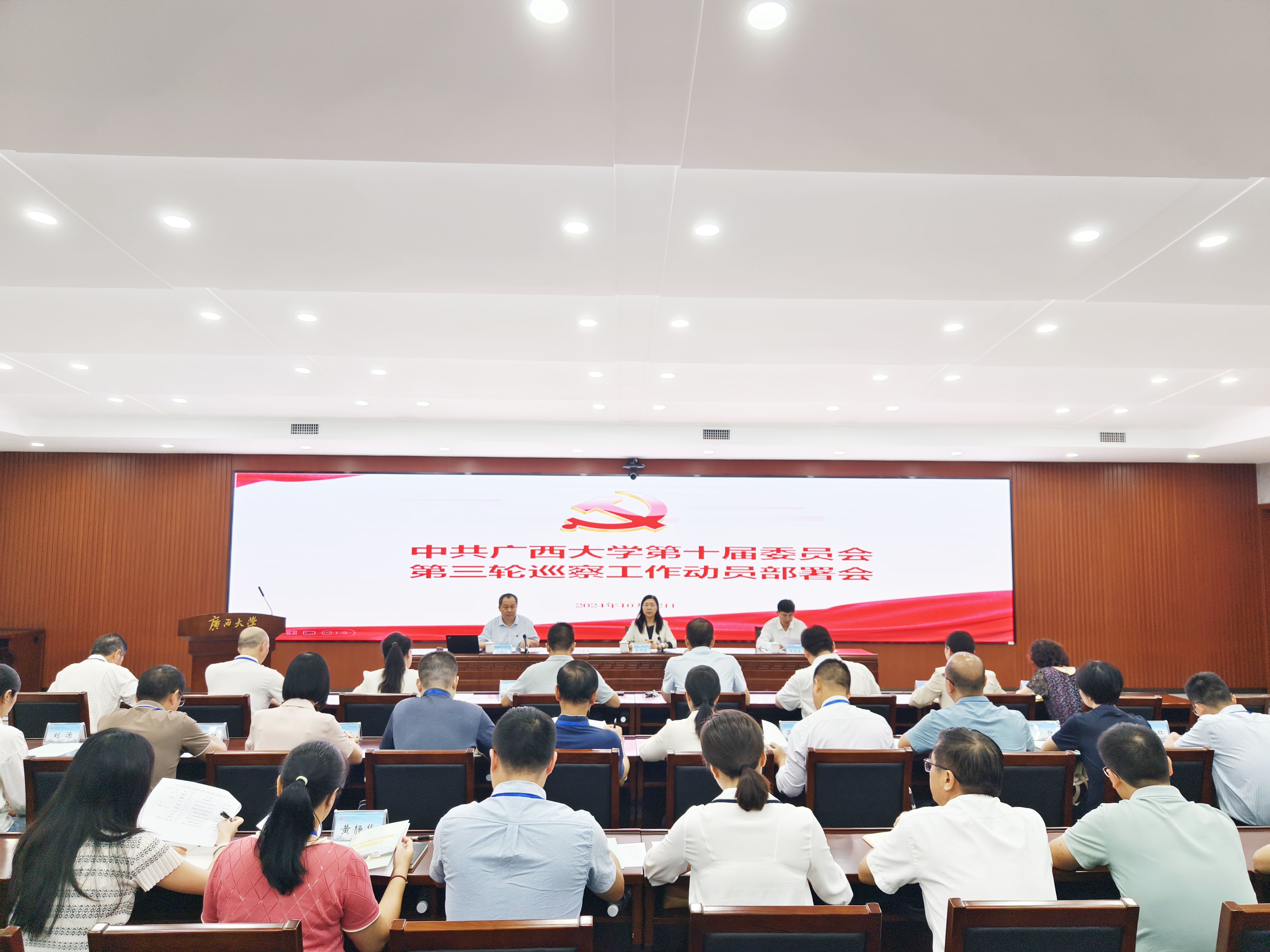 金顺南指出,在学校开展政治巡察,是坚持和加强党对高校的全面领导,落实全面从严治党要求的重要抓手,旨在促进学校完善治理体系和提升治理能力,确保学校各项事业沿着正确的方向健康发展。要深入学习贯彻党的二十届三中全会精神,深入学习贯彻习近平总书记关于党的自我革命的重要思想、关于巡视巡察工作的重要论述和关于广西工作论述的重要要求,认真贯彻《中国共产党巡视工作条例》,紧紧围绕学校党委中心工作,加强政治监督,不断以巡察监督推动学校各项事业高质量发展。党委巡察组要始终将“同题共答”的工作理念贯穿工作全过程,与被巡察单位做到同频共振、同向发力。各被巡察党组织要认真对照本轮巡察的要求,积极开展自查自纠,切实整改党委巡察组发现的问题,不断强化党的领导、加强党的建设、推进全面从严治党。